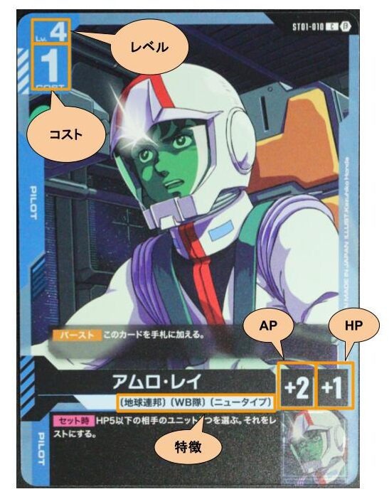 ガンダムカードゲームには、メインデッキに入る4種類のカードタイプが存在します。