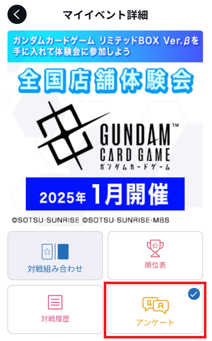 アプリの「マイイベント」の「アンケート」から、今回参加して感じたことを率直に書いて伝えましょう!