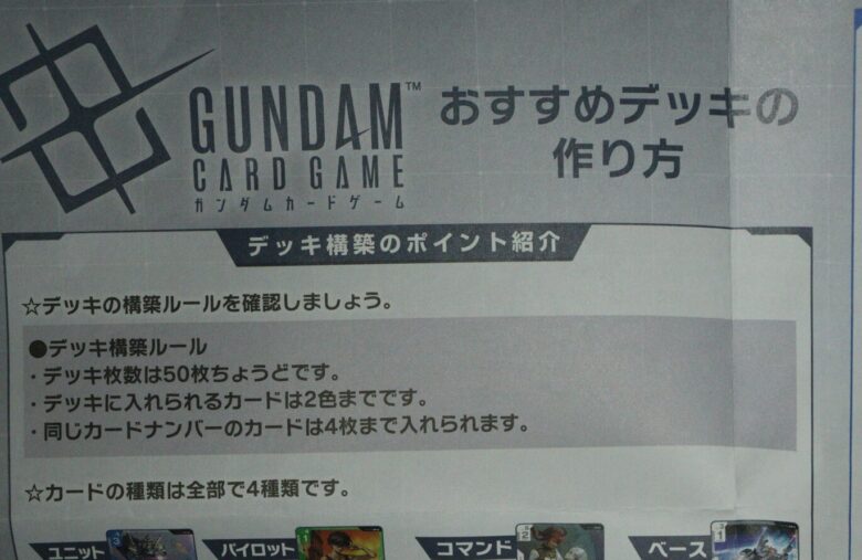 デッキ作りのコツは、ルール説明シートに書いてありますのでそちらを参考にしてみましょう!