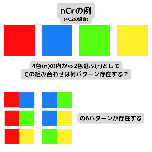 「n」の中から「r」を選ぶ組み合わせ(C)を算出するための考え方です。