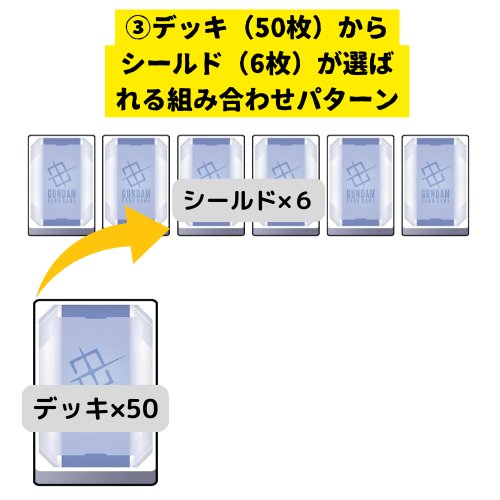 ③デッキ(50枚)からシールド(6枚)が選ばれる組み合わせパターン