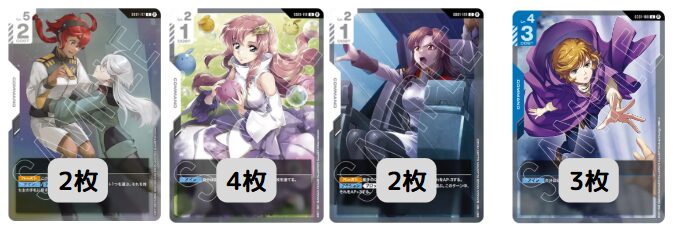 ただこのデッキでは『パーフェクトストライク』や『ランチャーストライク』のリンクパイロットになれるので、もし使いどころが無ければ「パイロット」として使えばOKです。
